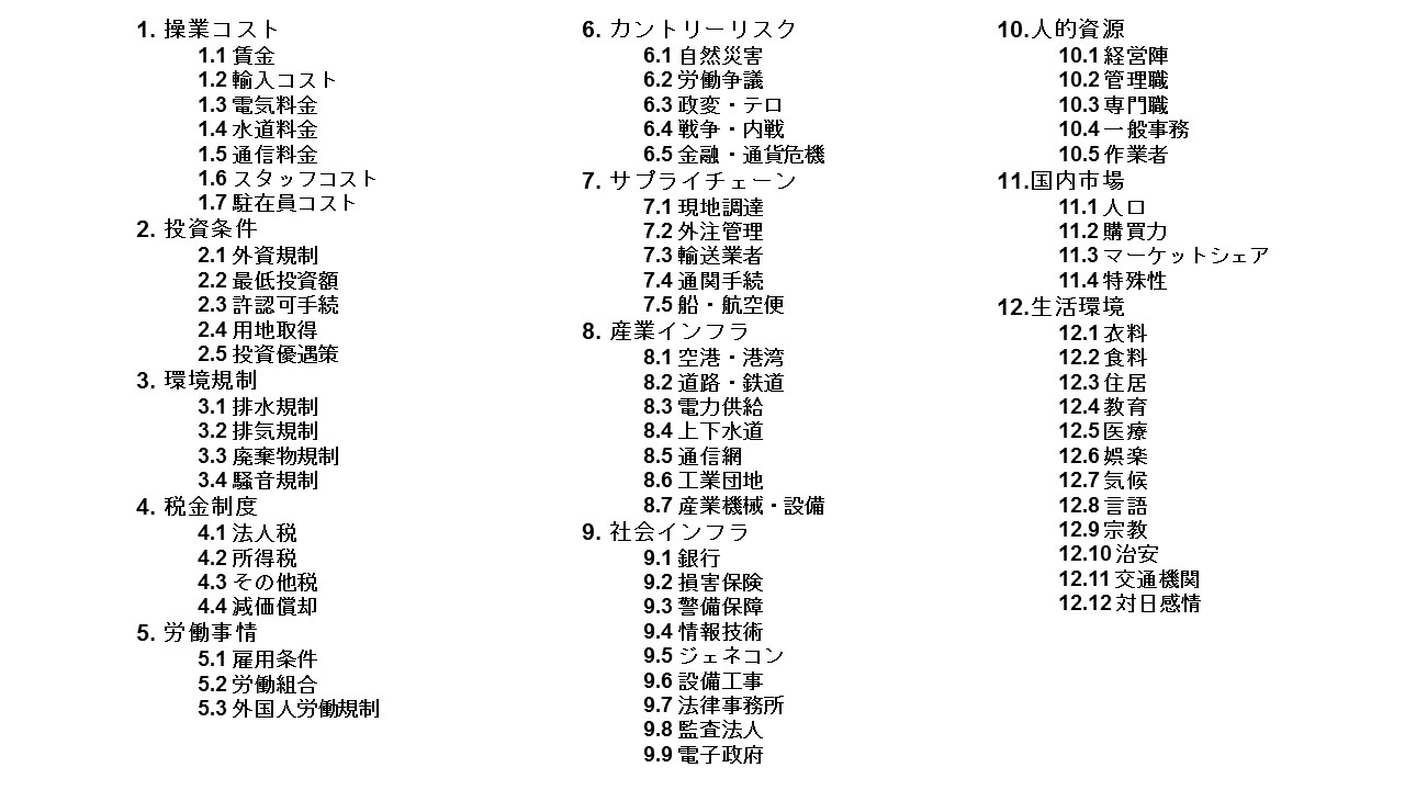 具体的な評価項目としては以下の12分野について全158項目がお薦めです。